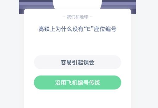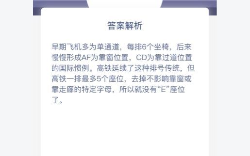蚂蚁庄园动车高铁上为什么没有E座?这是什么原因?对于E座编号没有的问题,相信很多人都会有这样的疑惑,本站小编将在今天的攻略中,为大家带来这个问题的正确答案,下面还有答案的解析内容为大家分享。