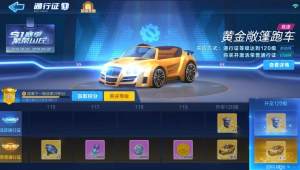 而黄金敞篷车是通过赛季通行证获得的,玩家需要先花30元购买荣誉通行证,然后将通行证的等级提升到120级才可以领取,难度非常大。如果现在才开始做升级通行证的打算,那么想在赛季结束前达到120级而且不充等级是不可能的。总结一下小编认为已经有黄金敞篷车的玩家没必要再去抽飓风了,因为飓风这辆车的属性真的一般,和黄金敞篷车相差无几。