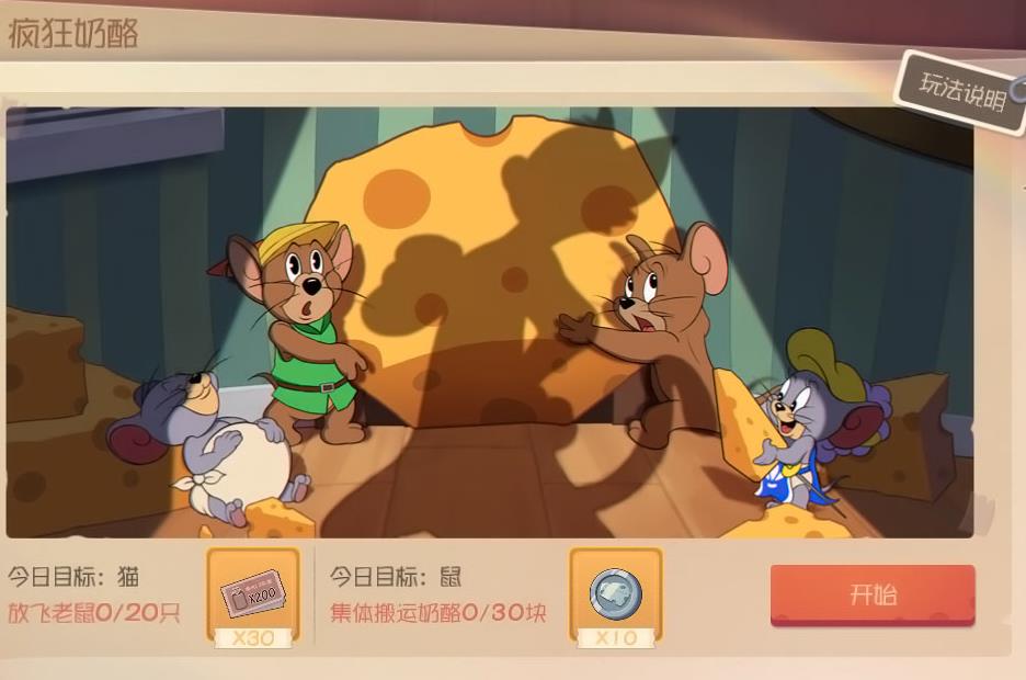在“疯狂奶酪赛”中,杰瑞的队伍想要取得最终胜利,就必须保证在规定时间内运完所有奶酪,并有至少两只老鼠顺利脱身,对美味的追逐与自身安全缺一不可。而汤姆一方想要胜出,可以艺高猫胆大直接抓到三只老鼠并进行放飞,也可以阻挠老鼠们搬运奶酪拖至时间结束,还可以在奶酪已被运完的失利状态下疯狂捕捉老鼠,只要老鼠逃跑失败的数量达到2只及以上,胜利仍将属于汤姆!