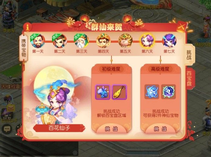 10月1日,正是一年一度的国庆节。在10月1日~10月7日黄金周期间,七位仙人也来到了三界,为三界送上祝福。玩家可以前往三界各地,挑战七位仙人,获取诸如经验、金钱、节日积分、稀有助战养成材料、仙人宝物等奖励。