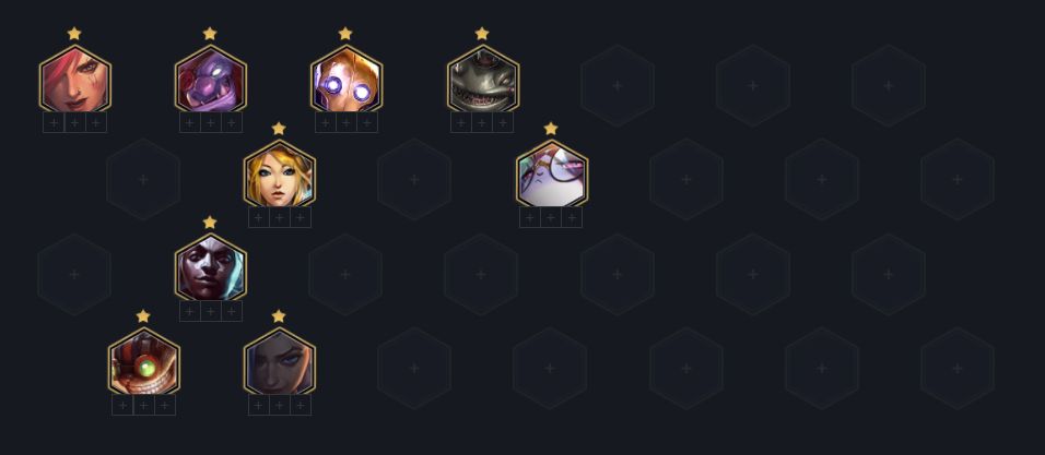 这套阵容核心就是6极客+蔚,其他棋子均可替换,比较建议5费强势单卡,特别是塔姆、悠米、杰斯。特别是塔姆,更是能决定这套阵容的上限。