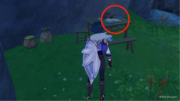 进入所标记的洞内,然后攻击洞内的可破坏岩石之后就能看到一处桌子,桌子上有一本书。