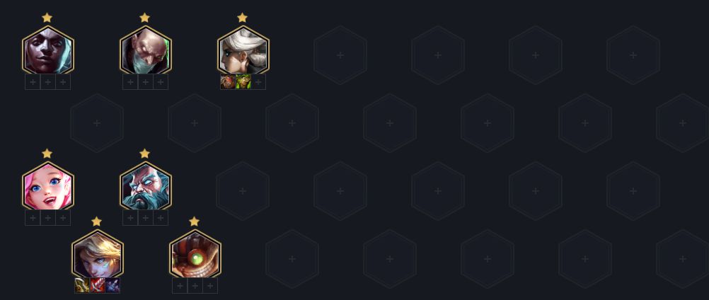 多余装备:输出装给金克丝or杰斯,单散件腰带和锁子甲给极客单位(机器人or艾克),腰带随机合成吹风和伏击,锁子甲可以随机合成鸟盾和法衣。