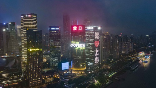 震旦国际大楼是上海浦东陆家嘴金融贸易区临黄浦江最近、景观最佳的高级办公楼,与香格里拉大酒店、上海国际会议中心、东方明珠塔、上海海洋水族馆为邻,也是上海的标志性建筑之一。在5月15日到5月21日,每日18:30~23:00期间,战术少女们每天都将在黄浦江畔准时现身!江景与都市霓虹交映,充满了“赛博朋克”的味道!