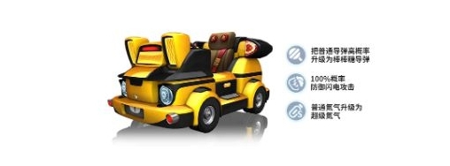 稳固的车身,趣味的设计,乐园巴士不仅能带给人安全感,也会带给赛场上的你十足的竞争力。它在道具赛中拥有强力的棒棒糖导弹作为输出的保障,同时又能免疫闪电的攻击,攻守兼备,而它的超级氮气也确保了它在道具赛上的速度。总的来说,乐园巴士的技能非常全面,适合全段位的车友使用。