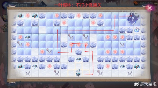 难度在于走格子通关、跟拿樱花、宝箱、怪物等要求。(樱花拾取后不会重新出现、宝箱跟怪物重置或者通关后再进会重新出现)