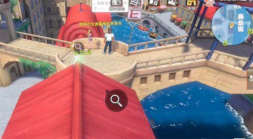 然后得知这个料理的独特口味来自海盐,然后需要玩家来到商业街的拱桥上,这个就是来到如图所示的位置,就可以调查得到了。