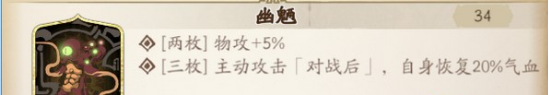 幽魉:[2枚]物攻+5%;[三枚]主动攻击对战后,自身恢复20%气血