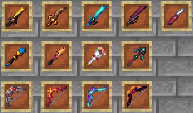这个世界中的怪物血量普遍比原版怪物高得多,如果使用原版武器(铁剑、钻石剑等)打起来会非常吃力,建议只使用新增的这些武器,而且有条件的话准备不止一把(比如带有连锁特性的武器用来对付群怪,带有暴击特性的武器用来对付血量极高的怪),会让战斗变得更加轻松。