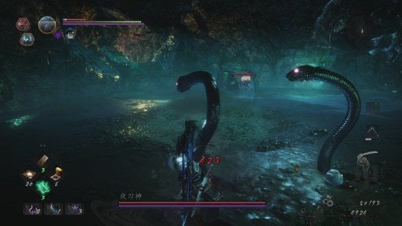 进入常暗后夜刀神会重新长出双臂,有时还会找出至多两条小蛇,小蛇血量很低但也会喷吐毒液和横扫攻击,最好先解决掉但要注意夜刀神本体的位置,之后只要在重复前方的打法即可。
