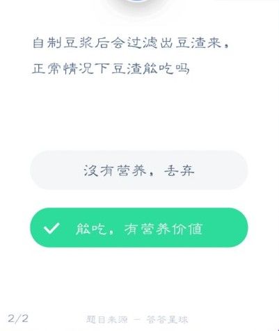 蚂蚁庄园今日答案豆渣能吃么?2020年12月19日蚂蚁庄园的题目问大家自制豆浆后会过滤出豆渣来正常情况下豆渣能吃吗?大家都知道豆浆营养价值非常高,哪么这个豆渣到底能不能吃呢?下面小编就来告诉大家正确答案。