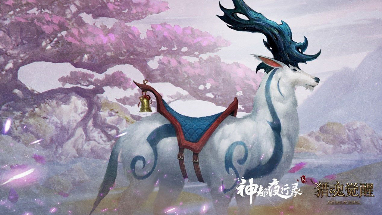 在山海经中,夫诸是一种长着四只角、外形酷似鹿的神兽。它的情状似温柔洁净,喜欢四处角戏,在《神都夜行录》中,夫诸有着发光的四角以及白如霜雪的身子,仿佛仙境下凡的神鹿。此次夫诸穿越至艾兰特大陆,竟化身成为了一只傲岸帅气的白马, 身上的冰雪光效定会让骑乘的游骑兵们带着东方的飘逸仙气。