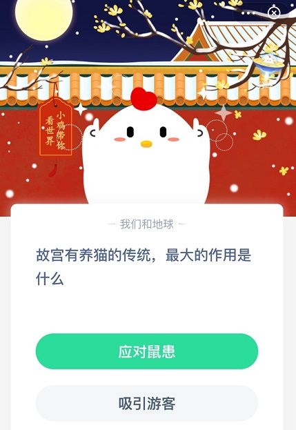 蚂蚁庄园题目:故宫有养猫的传统,最大作用是什么