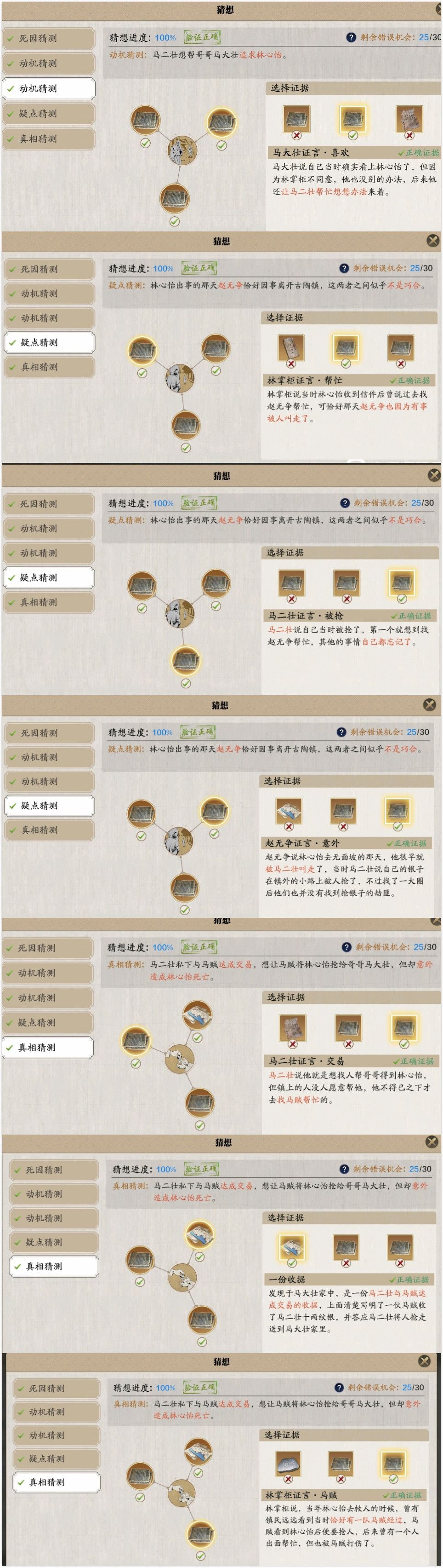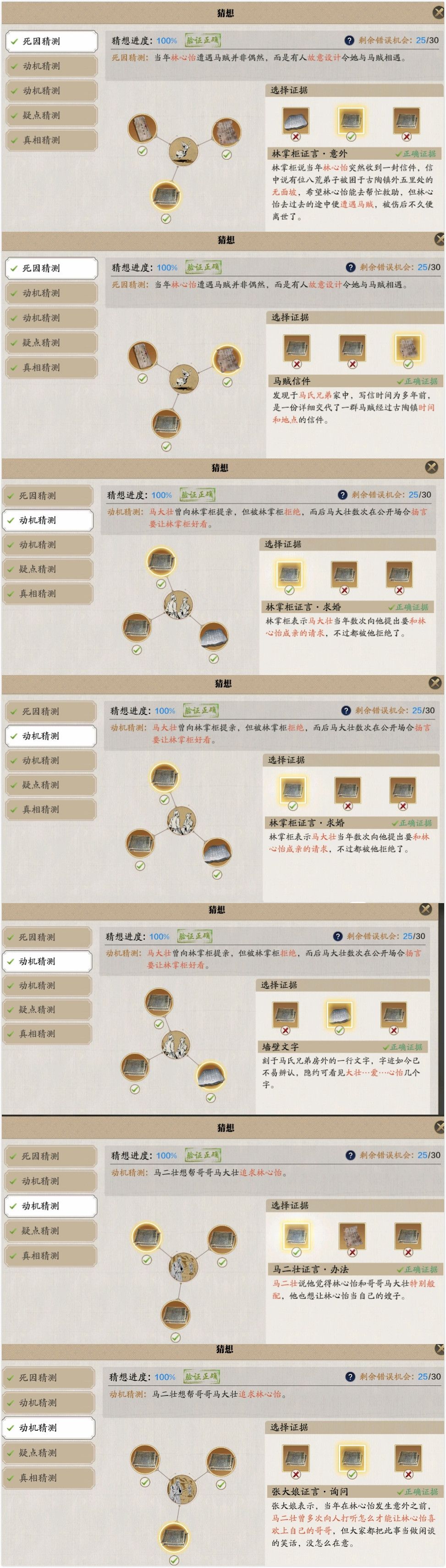 后面还有这两个选的忘记是什么没有截图上,就是不是意外,是马二壮为了撮合林心怡和大哥跟马贼串通演戏造成意外啥的