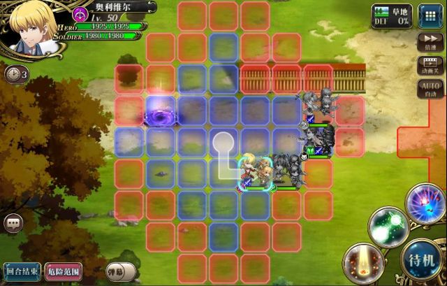 敌方魔动兵的攻击是AOE,范围为我方魔动兵身边2格,科洛斯如果连续被敌方魔动兵射中2次就会死亡,所以要注意科洛斯血量,利用光明环和奥利维尔的快乐激发来回血。