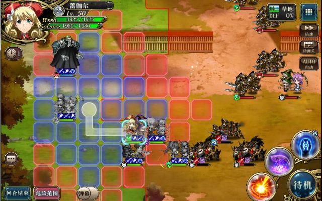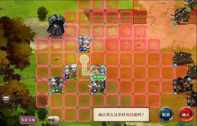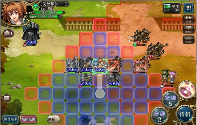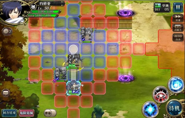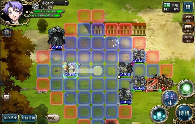 本关前3回合需要我们躲避敌方魔动兵的AOE技能,敌方AOE范围为四格,地上的光圈为AOE中心点。