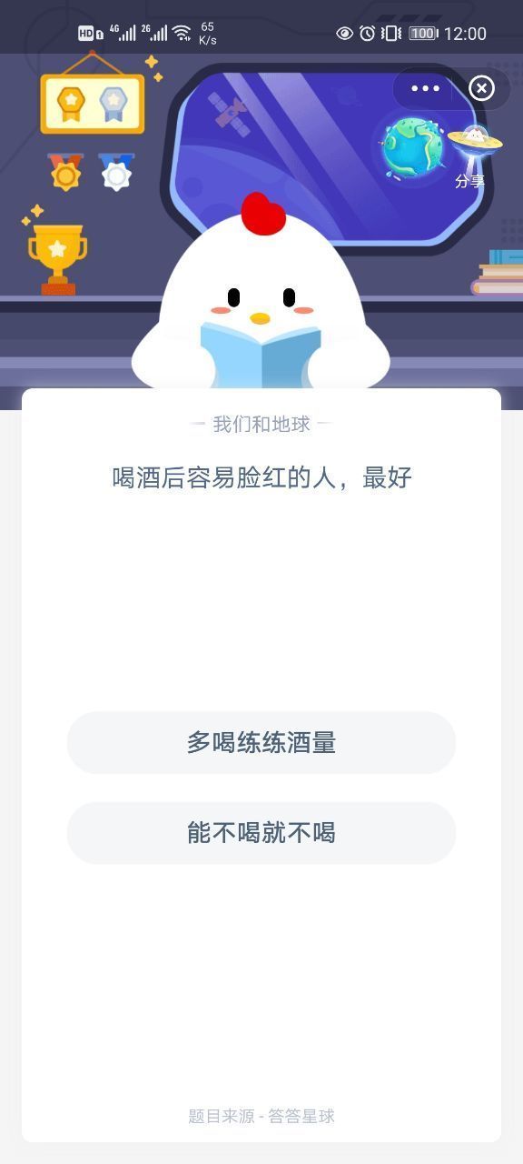 蚂蚁庄园喝酒后容易脸红的人是多喝练练酒量还是能不喝就不喝?喝酒脸红的人占比还是很高的,不过有很多人在一些场合必须要喝酒,所以都会多喝酒练练酒量,那么这种做法对不对?下面让本站小编来为大家揭晓答案吧。