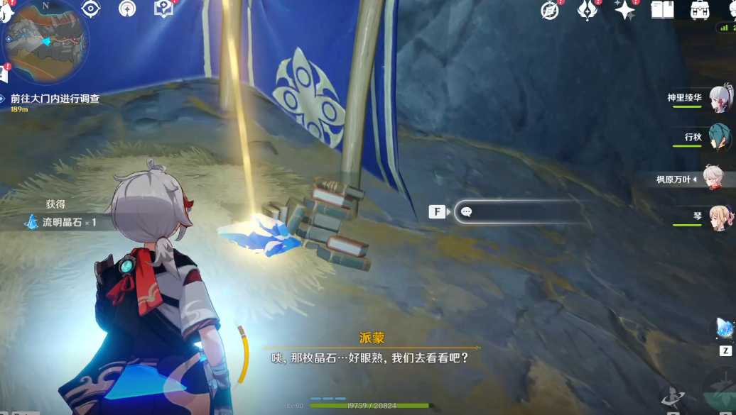 3.前往志琼提到的大门处,使用[斯之钥」开启大门后前往大门]内进行调查。在愚人众留下的一处小营地内拾取到一枚流明石原矿。