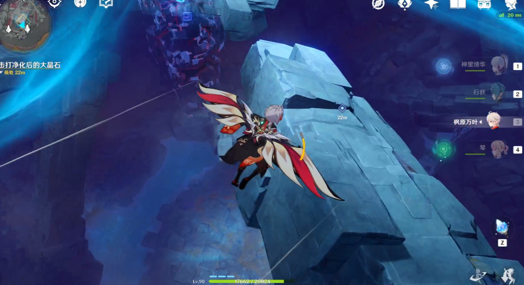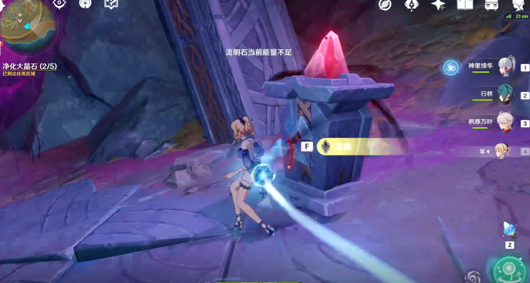 6.净化完后,说是要击打一下大晶石,但不是让我们去用普通攻击敲打大晶石,只需要跟随任务引导来到指定位置后会出一段击打大晶石的CG动画了。
