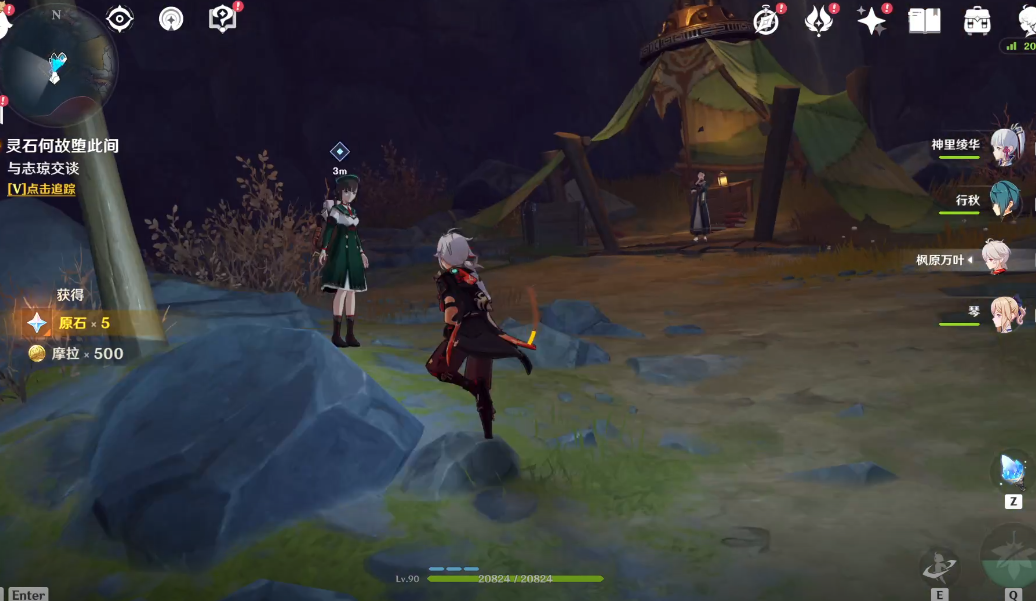 1.完成上一阶段任务后,我们来到任务引导区域和来到此地的志琼对话。随后和她一同前往新的勘探队营地。(任务 到这里时,原勘探队营地的所有NPC都会转移到这里,后续NPC任务和强化流明石触媒都会在此处进行。)
