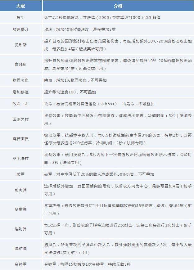 战士、射手、法师拥有专属成长天赋。