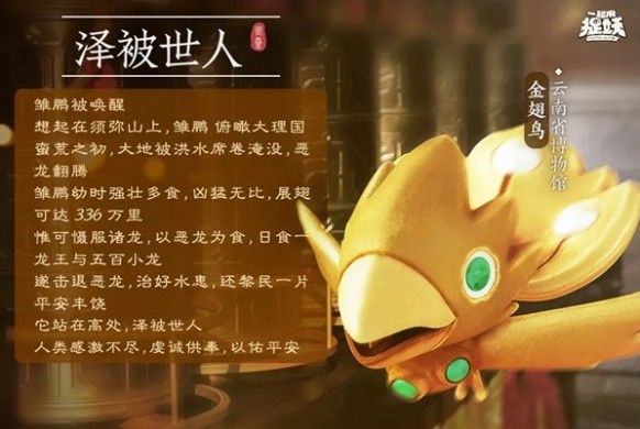 文物妖灵的首批先行使已在游戏内实装,其中最先登场也是最具有代表性的,便是最早被曝光的文物联动对象即来自云南的雏鹏。目前御灵师们已经可以在地图的指定地点附近发现其踪迹,而后续还会推出更多的获取方式。