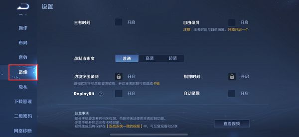 3、在录像中就可以找到【王者时刻】,点击旁边的开启即可;