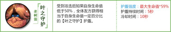 老树翁是目前宠物中最厉害的防御型宠物,它的技能是对全体友方有效,而且CD也短。技能每次升级护盾强度+28%,保命功能非常强的宠物。