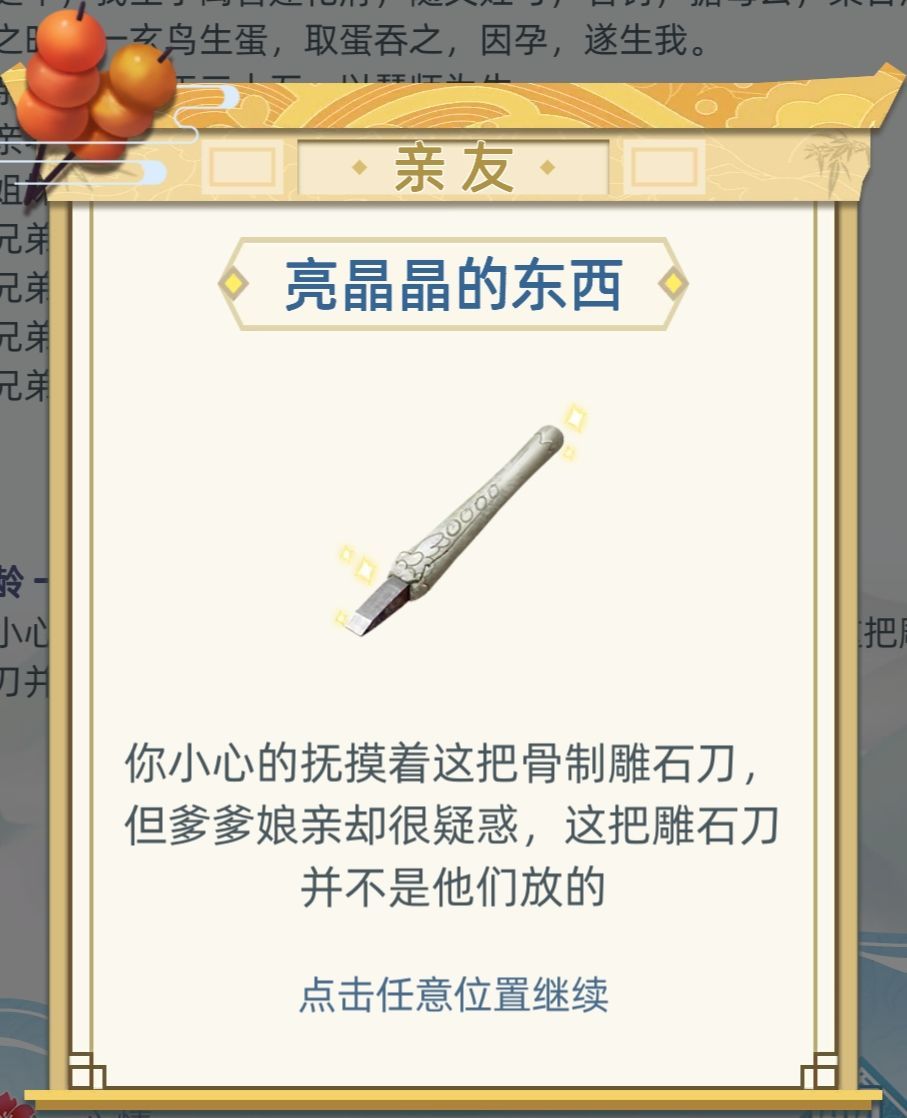 触发条件:抓周抓到骨制石刀,并且在八岁拒绝上学。