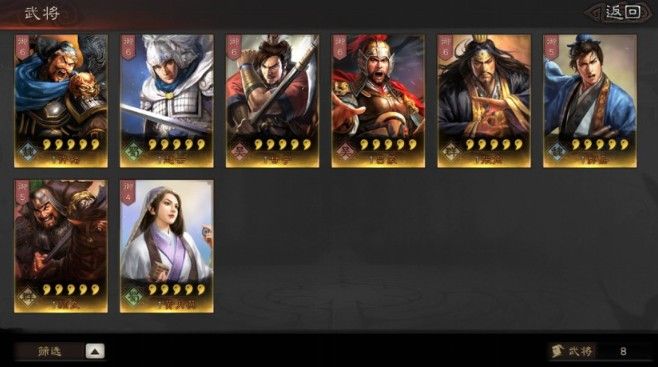 八名五星将领都非常强力,即使其中相对最弱的颜良,其拆解的战法盛气凌人也是必备神技。