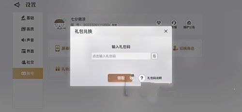 此时可以在这个账号里面找到礼包兑换,然后输入这个礼包码,就可以顺利的得到奖励了。