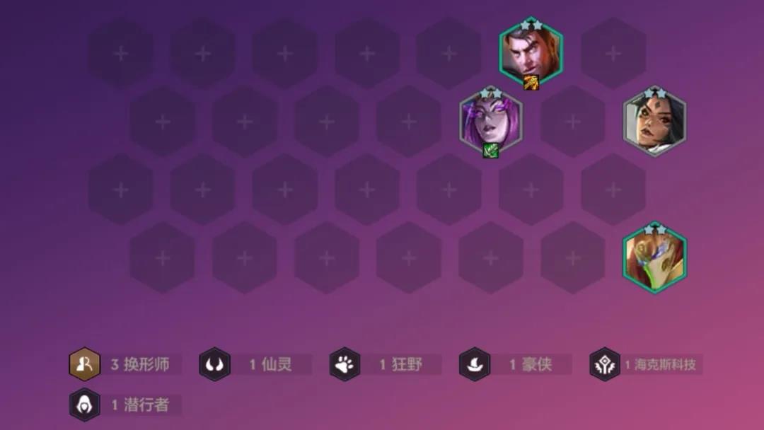 开局尽量用三换型。由于现在前期换形过渡热门,如果开局换形多可以考虑刺客或骑士挂双C。