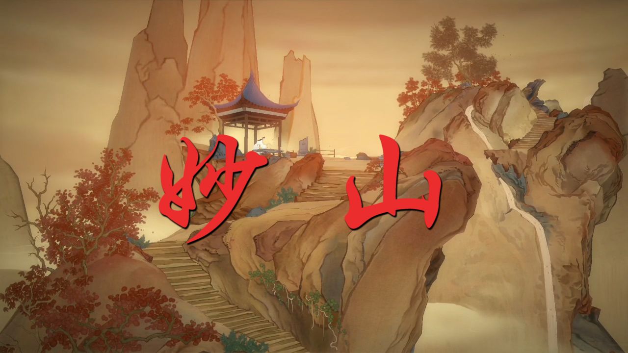 第一章名为妙山。一修寻找妙山先生学画,在路上救了一名妖精少年,见到妙山先生后,妖精少年被妙山取名为墨言,在剧情中,一修好像和江山图的创造者是同一人,不过这种古风手游多半都是这种剧情,一修需要完成妙山布置的任务,而每个任务,都会对应不同的场景,也会有不同的故事,这些故事有些来自于山海经,有些来自镜花缘,这些故事都在一修与墨言,探索画道的故事中一一展开。