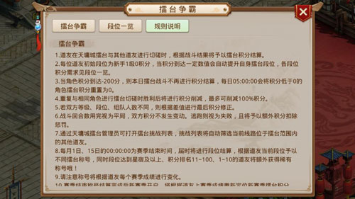 在活动期间,道友可以前往天墉城擂台区域进行切磋,只要活动期间处于擂台区域里,就可每隔1分钟自动获得一次道行数值奖励。活动期间切磋可正常获得擂台争霸积分,达到规定的连胜场次还会有特殊提示出现~