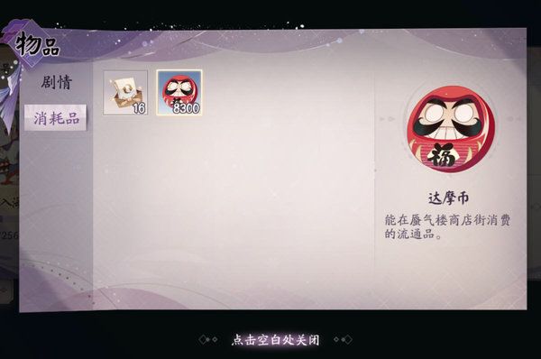 达摩币是用来购买任务道具,解锁后续剧情的。但是暂时没有用,用这个东西商店还没开放。