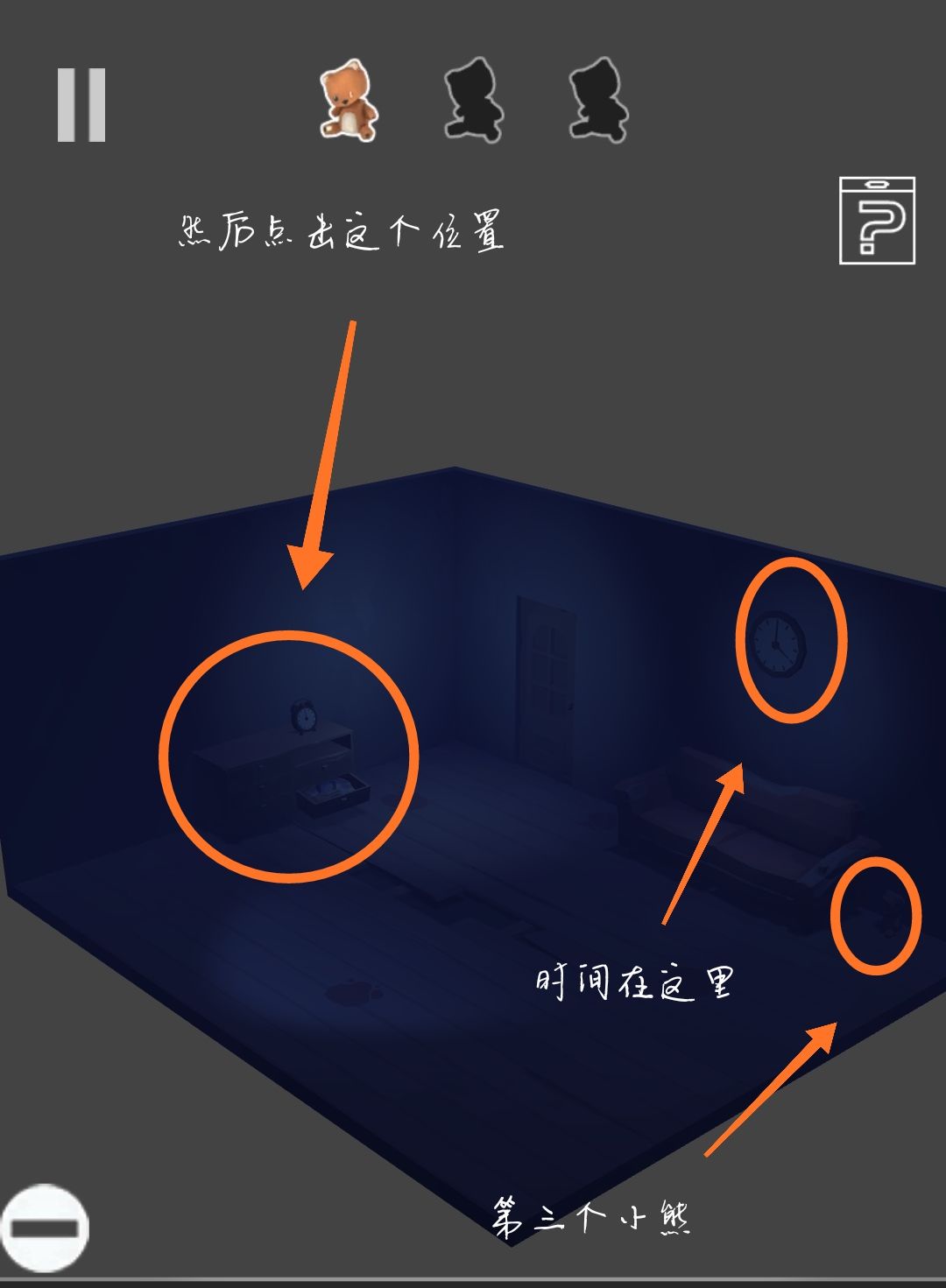 3、翻转房间,看到墙上的钟是四点,玩家们要记住
