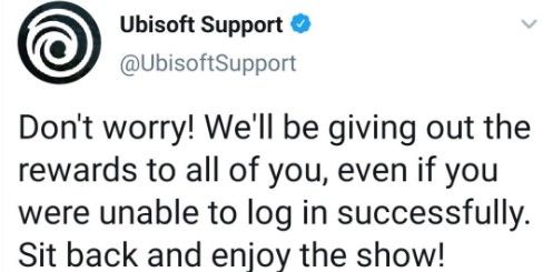 更新:新的领取方式还未通知,可能为所有账户白嫖入库也可能为新的奖励界面领取。可以关注育碧官方推特获取信息,国区原定b站今晚19:30的发布会回顾兼白嫖活动也并未取消,国区玩家可以前去关注。