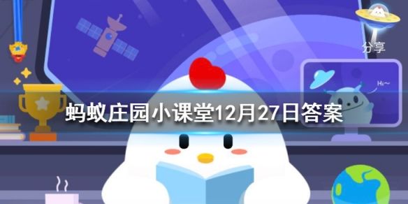 蚂蚁庄园今日答案12.27答案 蚂蚁庄园12月27日课堂答案